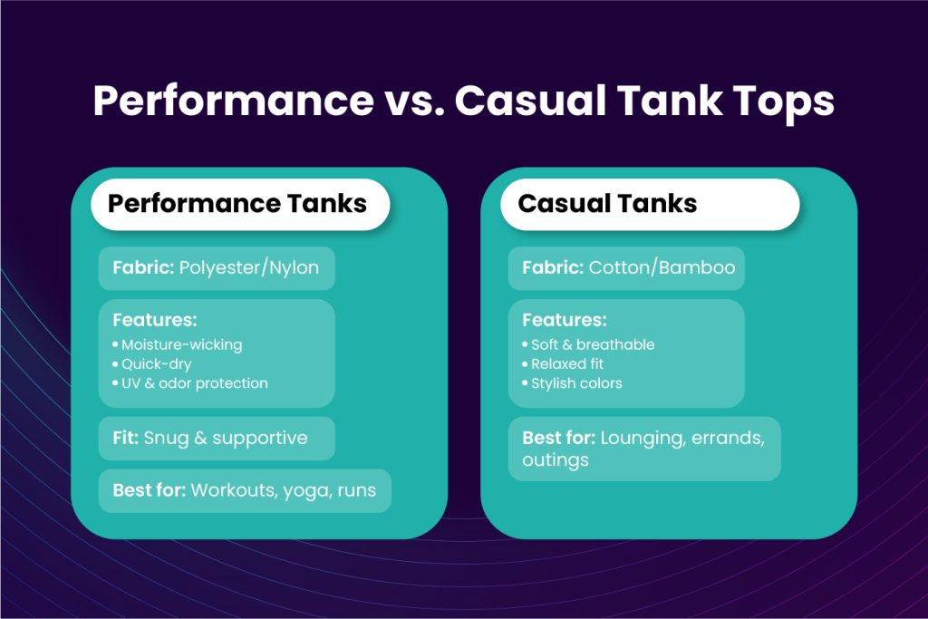 How do casual tank tops differ from performance ones?