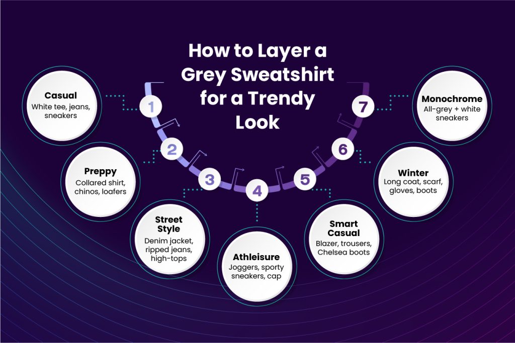 1. Classic and Casual: Grey Sweatshirt Over a White T-Shirt